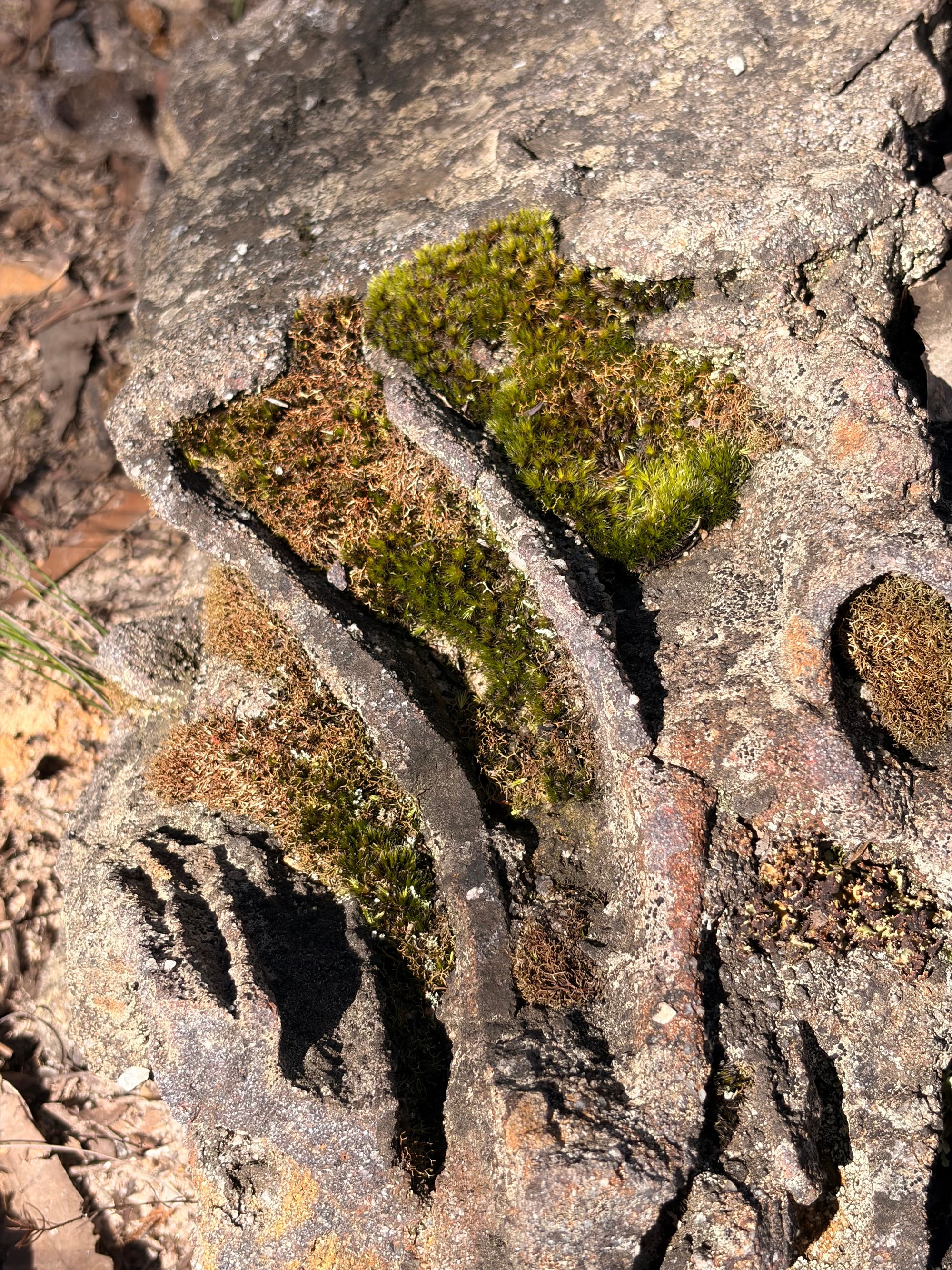The trail takes a big turn off the spur and starts heading down the eastern slope. It gets pretty steep, but there are solid slabs of sandstone that give you grip.