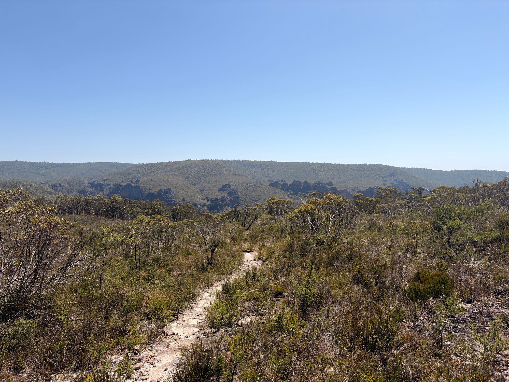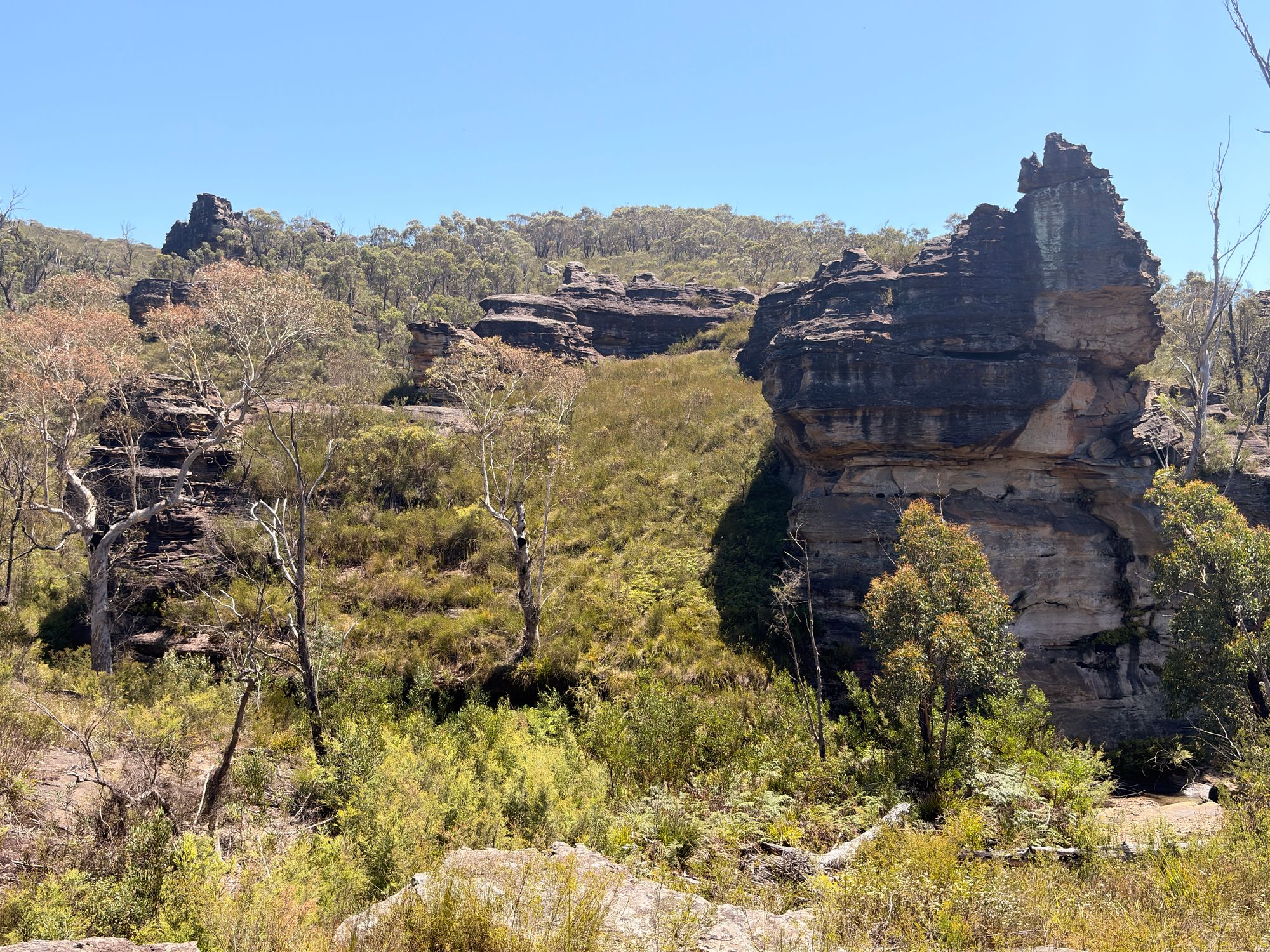 It’s a public holiday, and I’ve decided to do a walk somewhere in the Wollangambe Wilderness. I print out a map that I’ve marked up with a few POIs, grab my bag, and go. I’m at the Trailhead, and it’s not too hot for mid-summer. So initially, I was going to visit Goochs Crater. I’ve been wanting to do this walk for a while now. More on that later. I start walking down the main trail to the Crater. I’ve skipped the popular Dargans Arch as it adds a bit too much up and down, and I like to do easy walks in Summer.